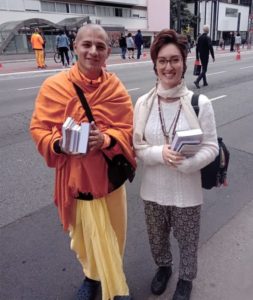 I saw this law student in Sao Paulo, Brazil, with a japa bag around her neck, and I asked her how long she’d been meditating. She responded that it has been a few years, and I then showed her the Gita.