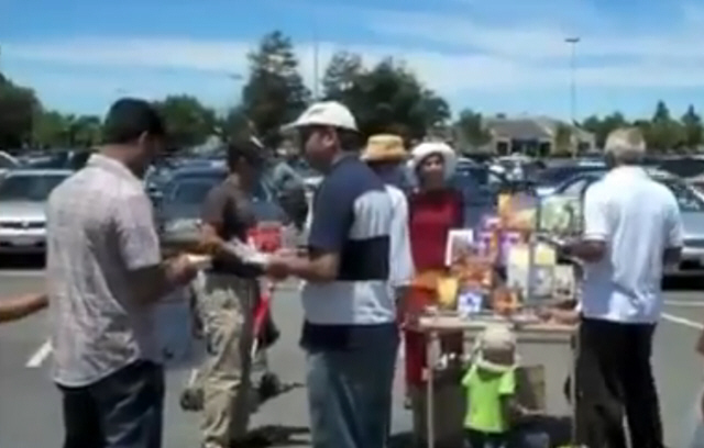 Book distribution at Farmers Market, Fremont