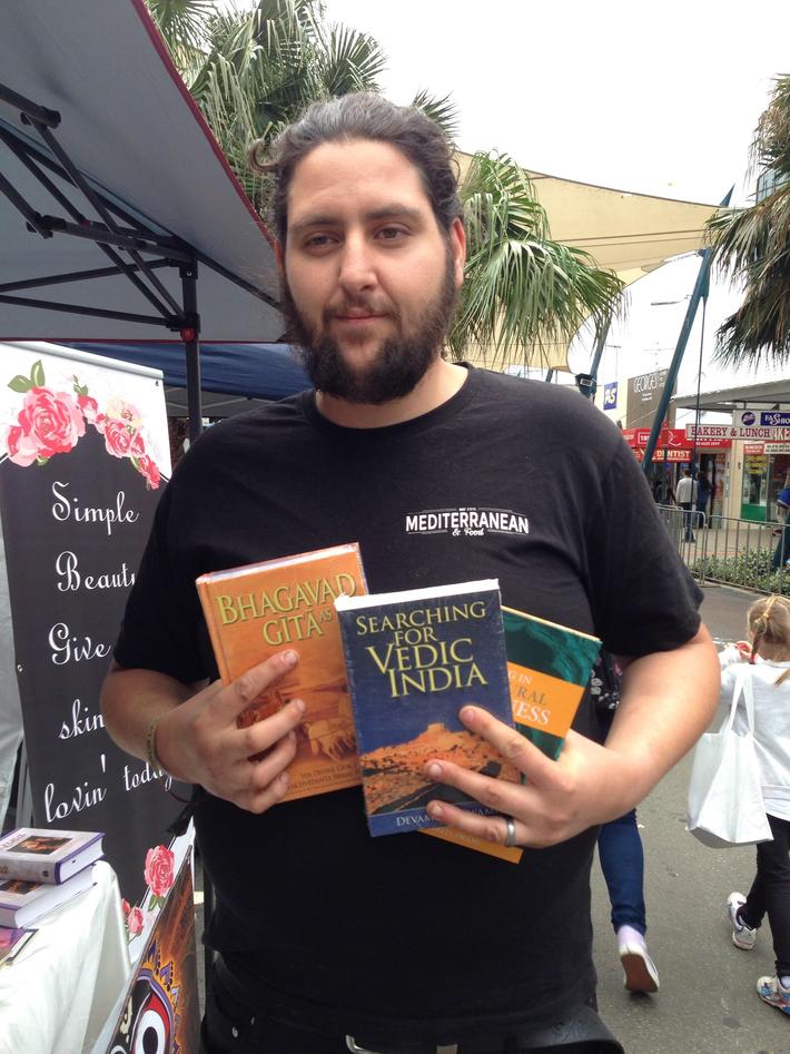 I was uncharacteristically minding my own business after a very busy day of book distribution at Fisher's Ghost Festival in Campbelltown, in south Sydney, when Tony, a geologist, looked at the Gita in my hand and “Searching for Vedic India.”