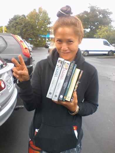 I was at the tofu shop in Henderson NZ on part of a day filled with odd jobs I had to do, I took a Bhgavad Gita with me to stop a few people between the car park and the shop. I stopped this lady and asked her if she had a copy of the Gita yet.