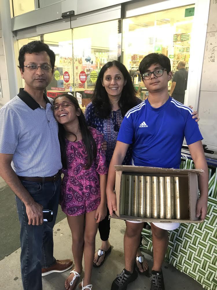 Finally, she agreed to take the set. A really sweet and spiritual family, whose photo is attached for the pleasure of the Vaishnavas.