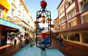As I approached him, he gave me a “I know what you’re doing” smile. I was persistently friendly and asked him some questions. I found out that he was actually part of the television crew for this forthcoming series, Wellington Paranormal. On that particular evening it was his job to reserve parking spaces for the movie crew, filming at the famous Cuba Street Bucket Fountain location. The scene, he told me, involved dying the water in the fountain red to look like blood!