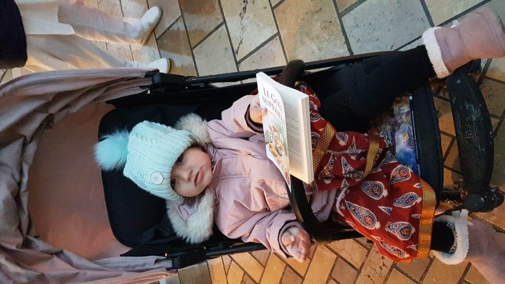 The French yatra has an extraordinary sankirtana devotee: a toddler, Sangita, who distributes books on her pram, probably the youngest and cutest book distributor in ISKCON.